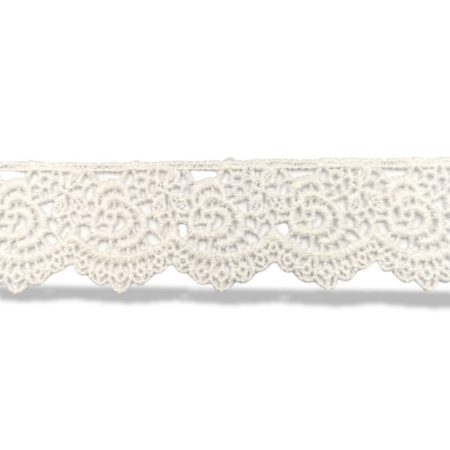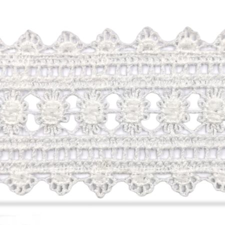 passamaneria in stile etnico, traforata e ricamata, realizzata in macramÈ bianco con disegni disposti in serie mm 40