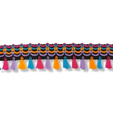 passamaneria realizzata con fili di cotone ricamati ad onda sulla bandina superiore e con nappine nella parte inferiore, che fun