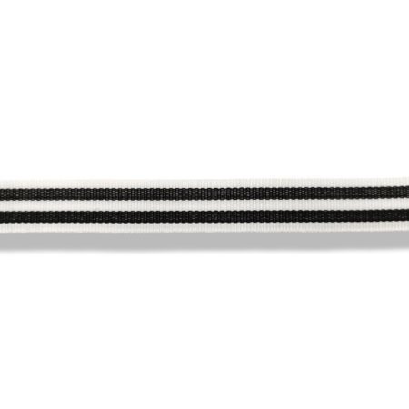 passamaneria realizzata in gros grain a linee orizzontali bianche e nere, alternate mm 15