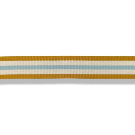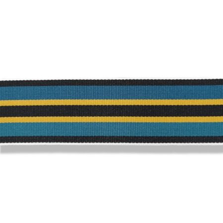 passamaneria realizzata in gros grain a linee orizzontali e centrali blue e bianchi, e fasce laterali gialle e blue mm 40