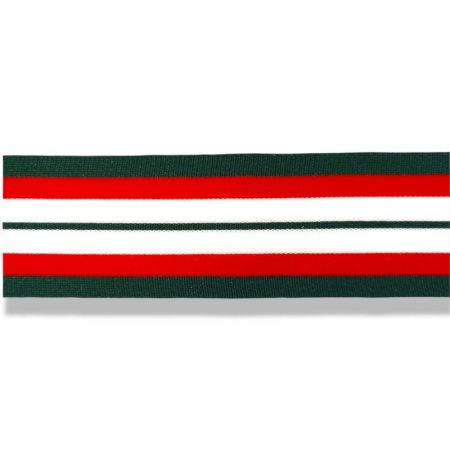 passamaneria realizzata in gros grain a linee orizzontali, con righino centrale verde e laterali bianche, rosse e verdi mm 40