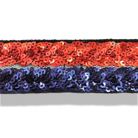 passamaneria realizzata su base di tulle nero con paillettes colorate disposte su due file orizzontali mm 32