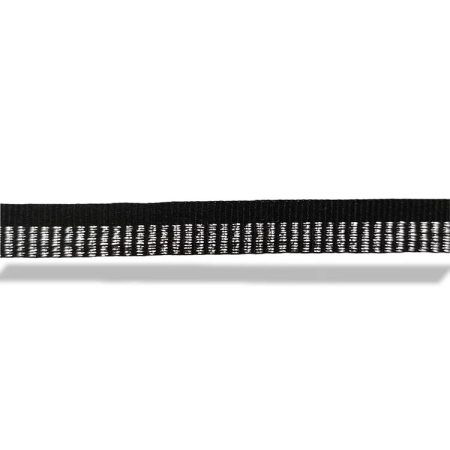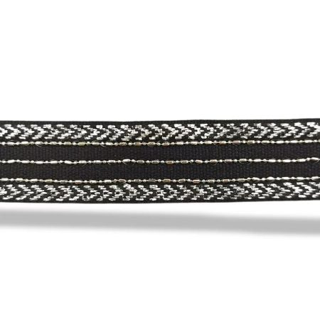passamaneria realizzata su fondo nero con righini verticali in filo lurex argento mm 10