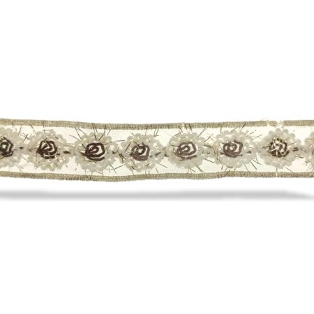 passamaniera fiore in tessuto/organza con perle pietre cucito a mano 5,5cm