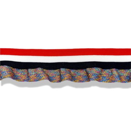 passamaneria composta da una parte superiore realizzata in maglina, con tre linee orizzontali, di colore blue, bianco e rosso, m