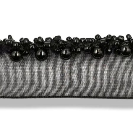passamaneria realizzata da file di perline nere ricamate su base di tulle nero mm 20