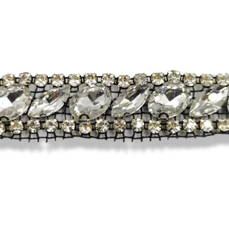passamaneria realizzata su base di rete nera con catena elettrosaldata al cui interno vi sono castonate pietre nere e crystal mm