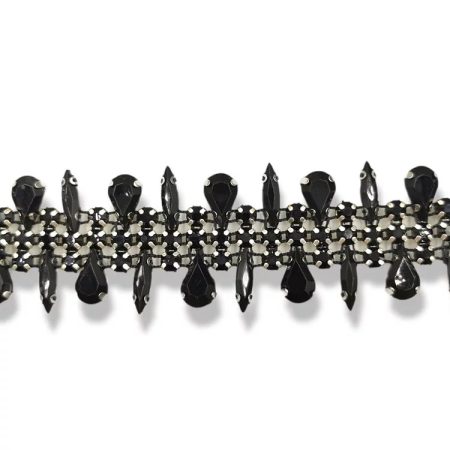 passamaneria realizzata con una catena di pietre nere, di varie forme, castonate singolarmente mm 30