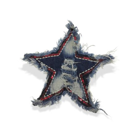 patch di forma circolare, ricamata e termoadesiva, in punta spugna , raffigurante in rilievo una stella a cinque punte 7,2 cm x