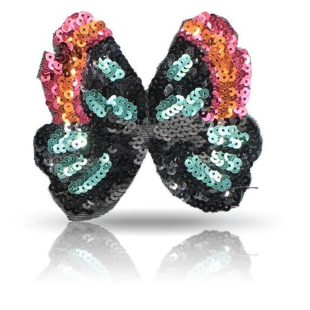 patch termoadesivo e paillettes ricamate con colori vivaci a forma di farfalla con ali aperte 11,3 cm x 10,3 cm