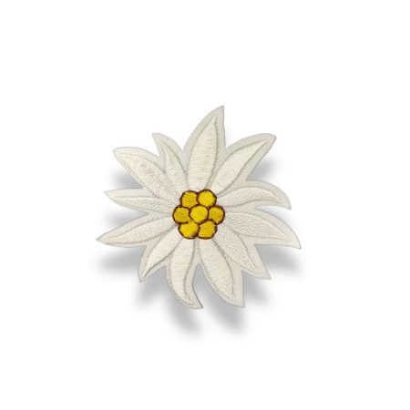 patch ricamata e termoadesiva su fondo bianco con motivo floreale raffigurante una margherita bianca e corolla di colore giallo