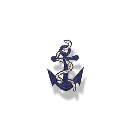 patch ricamata e termosaldata a forma di ancora di colore blue, con inserto raffigurante una corda attorcigliata intorno di colo