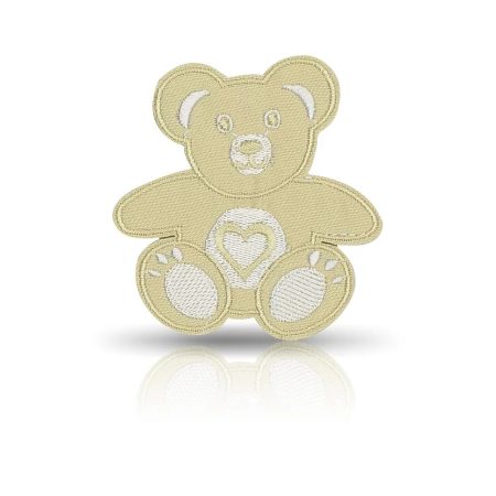 patch ricamata e termosaldata a forma di orsetto di colore beige, con particolari a contrasto di colore bianco 6,5 cm x 7 cm