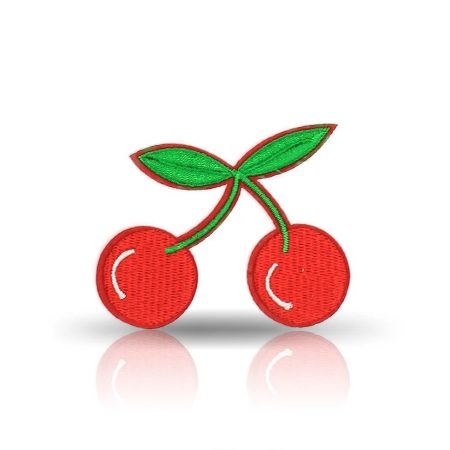 patch ricamata e termosaldata a forma di ciliegia con colori vivaci rosso e verde 7,5 cm x 6,4 cm