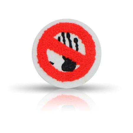 patch termoadesiva circolare e interamente ricamata a macchina in punto spugna e raffigurante segnale stradale di divieto 8 cm x
