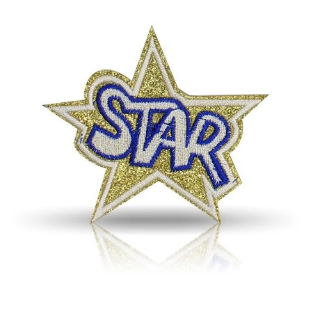 patch termoadesiva e completamente ricamata a macchina in lurex e raffigurante una stella a cinque punte e con scritta star a co