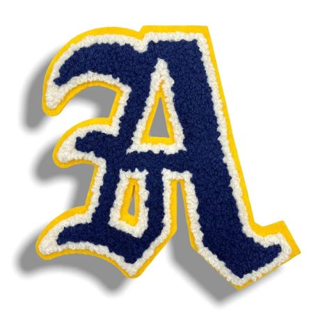 patch termoadesiva base in panno lenci raffigurante la lettera “a”, ricamata interamente a macchina in punto spugna 12,3 cm x 12