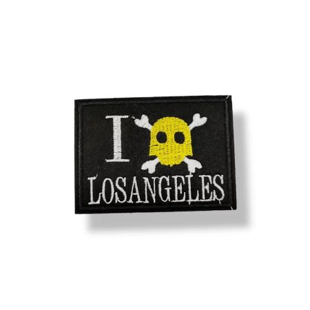 patch termoadesiva di forma rettangolare, ricamata interamente a macchina, con scritte bianche in evidenza su fondo nero 7,7 cm