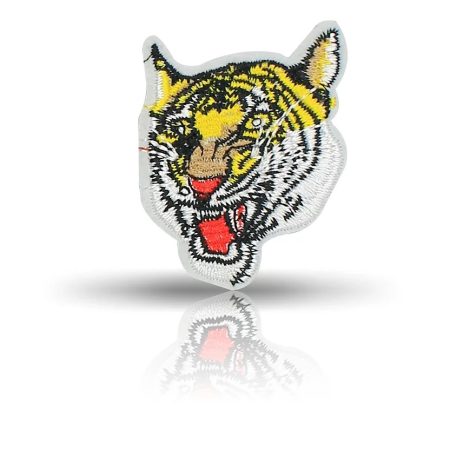 patch termoadesiva e interamente ricamata a mano, raffigurante il volto di una tigre 6,2 cm x 5,5 cm