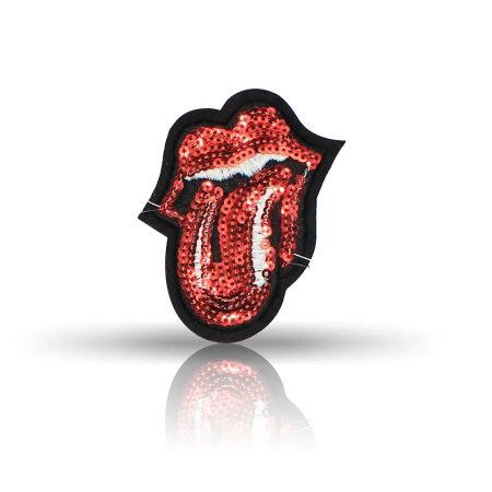 patch termoadesiva e ricamata a macchina, raffigurante una bocca formata interamente da paillettes di colore rosso 6,3 cm x 6,8
