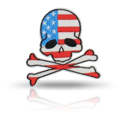 patch termoadesiva e interamente ricamata a macchina, raffigurante un teschio con all’interno disegnata la bandiera americana 8,