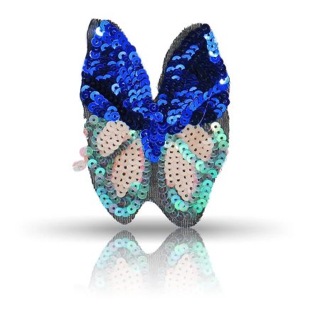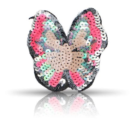 patch termoadesiva e realizzata interamente con paillettes, raffigurante una farfalla con ali aperte in colori vivaci 7,3 cm x 7