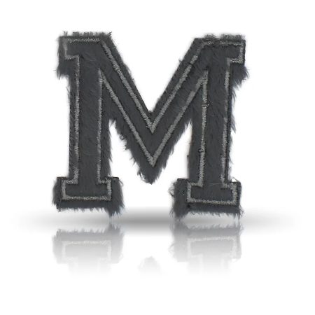 patch termoadesiva e ricamata con frange, di colore nero raffigurante la lettera m 7,5 cm x 7,2 cm