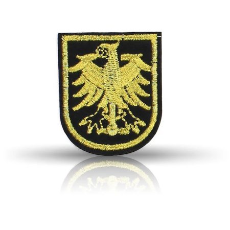 patch termoadesiva e ricamata, su fondo nero e raffigurante un dragone dorato come stemma di casata nobiliare 8 cm x 4,5 cm