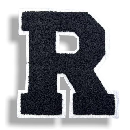 patch termoadesiva raffigurante la lettera ”r” realizzata in punto spugna 11 cm x 9.5 cm