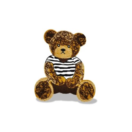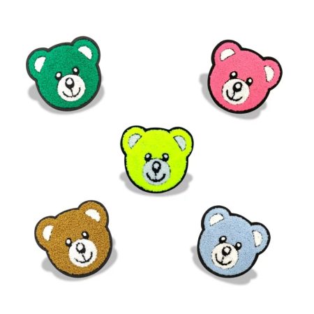 applicazione termoadesiva raffifurante un orsetto seduto, patchgrande realizzata interamente in punto spugna con inserti di piet