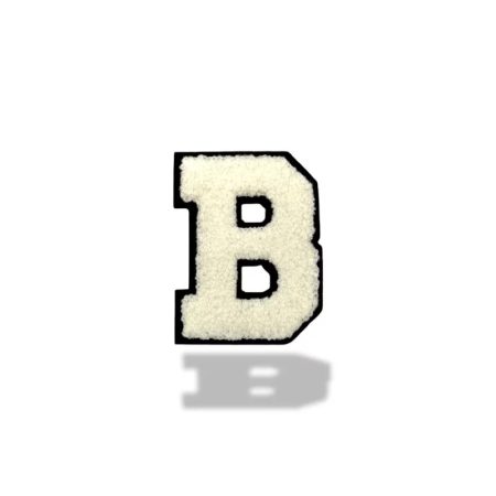applicazione termoadesiva raffigurante la lettera ” b ” , ricamata interamente a macchina in punto spugna su base di panno lenci