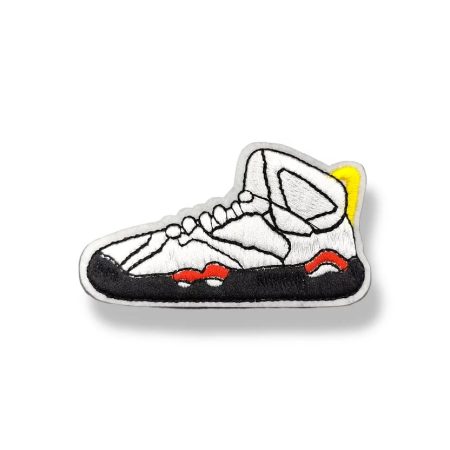 applicazione termoadesiva raffigurante una scarpa da basket, interamente ricamata a macchina 5 cm x 8,5 cm