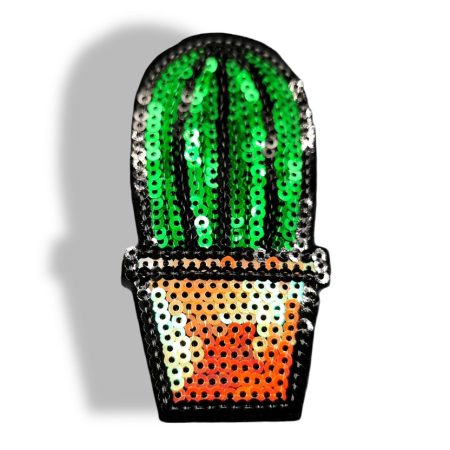 applicazione termoadesiva raffigurante una pianta grassa, realizzata interamente con paillettes 4 cm x 8,3 cm