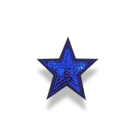 applicazione termoadesiva raffigurante una stella a cinque punte, realizzata con file di paillettes ricamate e un ricamo a ril