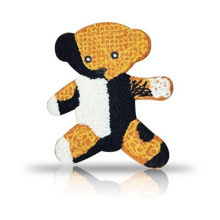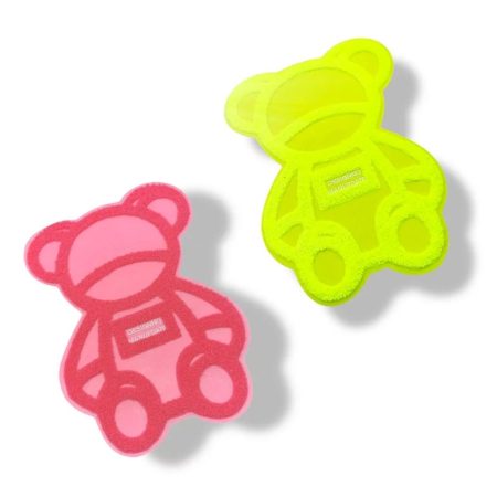 applicazione termoadesiva raffigurante un orsetto, patchgrande realizzata in puntospugna in colorazioni fluo, su tessuto pannole