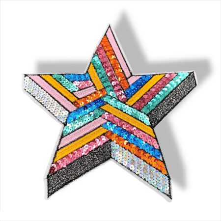 applicazione termoadesiva raffigurante una stella, patchgrande realizzata con paillettes interamente ricamate a macchina 20 cm x