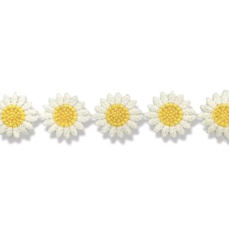 passamaneria ricamata interamente a macchina, raffigurante delle margherite disposte in serie 25 mm