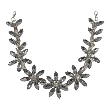 applicazione fiore con pietre in vetro a goccia e pietre tonde crystal, le pietre sono castonate singolarmente e cucite a mano
