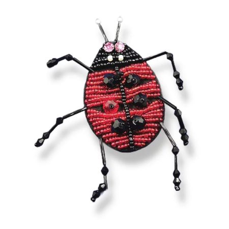 applicazione a forma di coccinella interamente composta da corallini cuciti a mano 6 cm x 4 cm.