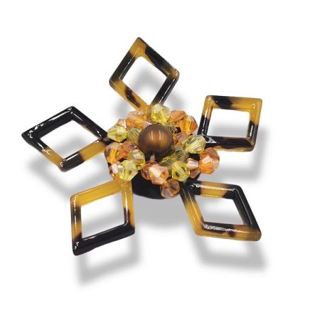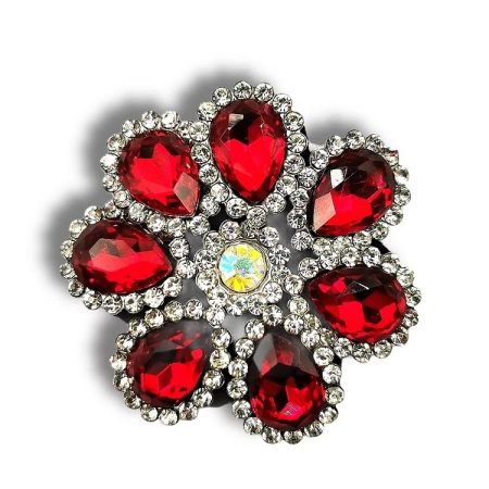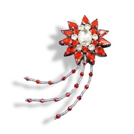 applicazione a forma di fiore in plastica, interamente composta da corallini cuciti a mano e pietra centrale in vetro 5,3 cm x 5