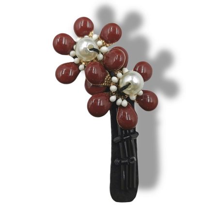 applicazione a forma di fiore con stelo cucita a mano e composta da canottiglie e perle con foro 7cm x 3,5 cm.