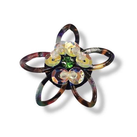 applicazione a forma di fiore in plastica, interamente composta da paillettes cucite a mano e pietra centrale in vetro 4,8 cm x