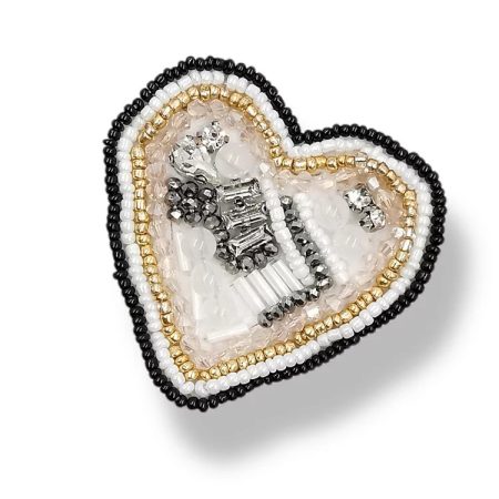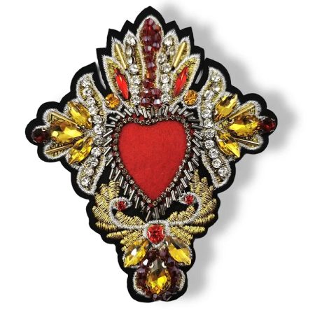 applicazione a forma di cuore sacro, interamente ricamata a mano e decorata con pietre in vetro, canottiglie e corallini cuciti
