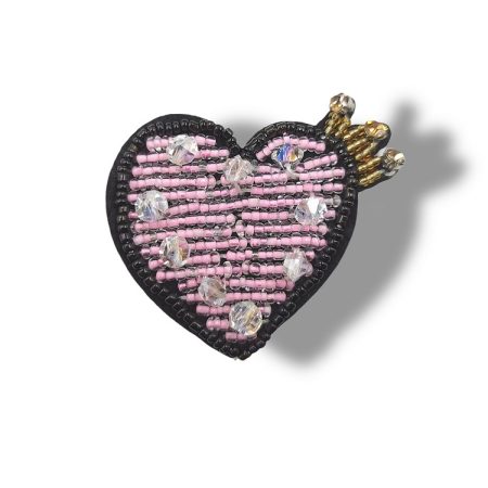 applicazione a forma di cuore interamente composto da corallini e pietre in vetro cucite a mano 6cm x 5cm.