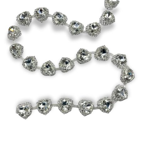 catena base nickel realizzata con pietre crystal saldate a forma di cuore 2.5 cm x 2 cm