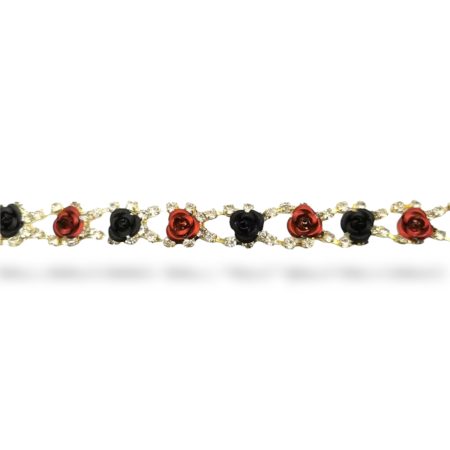 catena realizzata su base argento con pietre crystal e fiorellini rossi e neri, applicati e saldati in un unico corpo mm 15