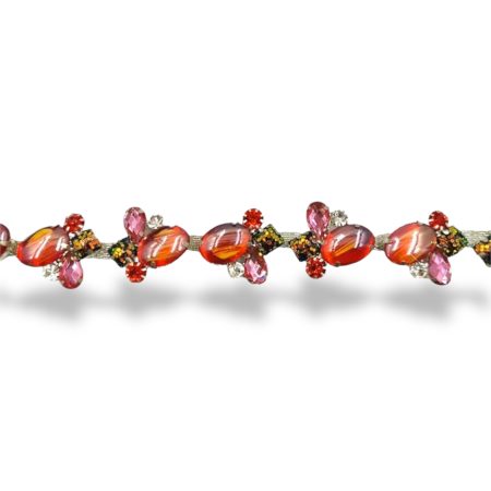 catena realizzata con pannellini rettangolari, composti da strass rossi ed uniti tra di loro da coppie di strass rossi mm 15
