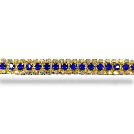 catena termosaldata realizzata su base oro giallo, formata da una fila centrale con pietre colorate e le due file esterne con pi