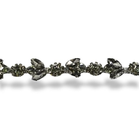 catena termosaldata realizzata su base grigio canna di fucile, la parte superiore È formata da due file di strass, collegate ci