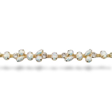 catena termosaldata realizzata su base oro giallo formata da una fila centrale con pietre crystal e lateralmente da due perline